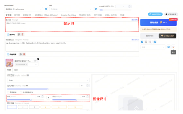 接着点击右侧蓝色【立即生图】按钮,打开在线 SD WebUI 界面,系统会自动填充所有参数,后面只需做2步:填写提示词+修改图像尺寸。