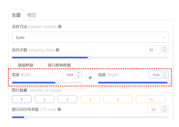 接着修改图像尺寸,因为是海报所以改成了 1024*1536px(3:4竖版构图)。你也可以按自己的需要的画幅比,分辨率在 768-1536 px 之间最好。