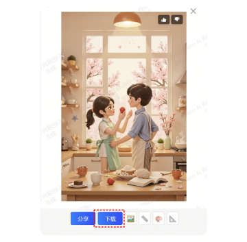 点击界面右上角蓝色【开始生图】按钮,等待图像生成。可以多成几次,选择效果最好的一张,接着点击【下载】将原图保存到本地。