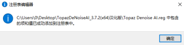 3、双击运行Topaz Denoise AI.reg导入注册表;