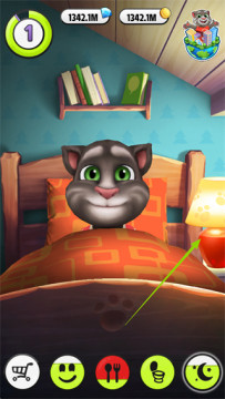 6、点击月亮,这里点击右边的台灯,将它关掉就可以让汤姆猫睡觉;