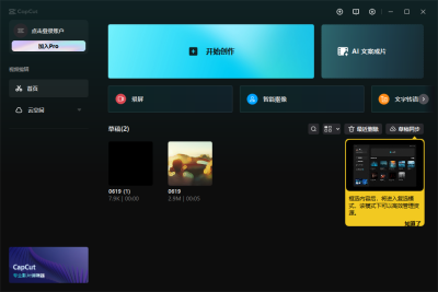 CapCut 的操作逻辑与剪映国内版一致,界面简洁直观,即使是新手也能快速上手。首次启动时,软件会自动检测系统语言环境,若电脑语言为中文,界面将默认显示为中文,无需额外设置,使用更加便捷。欢迎有需求的用户下载体验!