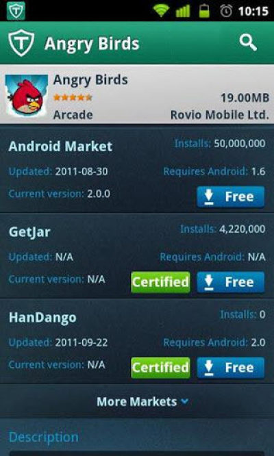 2.安全的应用程序搜索:搜索和下载应用程序的心态,因为他们知道自己有过气政客精心扫描我们的安全实验室团队的和平。TrustGo提醒潜在的恶意内容下载前;