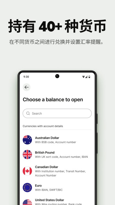 • 获取您专属的英国账号和银行代码、欧洲 IBAN 和澳洲账户详细信息等,就像您在世界各地拥有本地银行账户一样