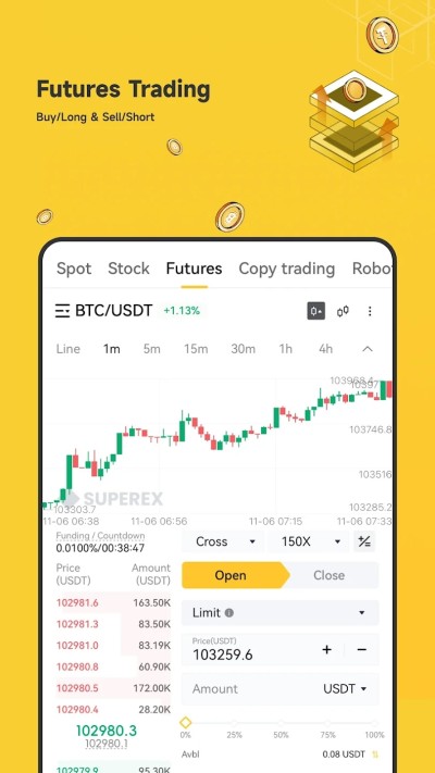 我们提供最全面的永续合约交易服务。支持150+币种,最高150倍杠杆,我们是合约交易的最佳助手。