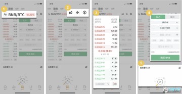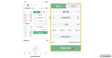 参考左侧的买卖区价格,输入合适的BNB购买价,输入数量,点击买入BNB,完成购买。(卖单同理)