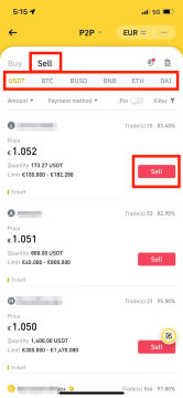 点击【卖出】,选择您想要出售的数字货币。系统会显示当前市场的所有报价,找到合适的报价后,点击旁边的【出售】即可。