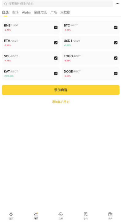 10、点击【自选区】,选择【卖出】,选择【CNY】,BNB币提现人民币步骤就可完成