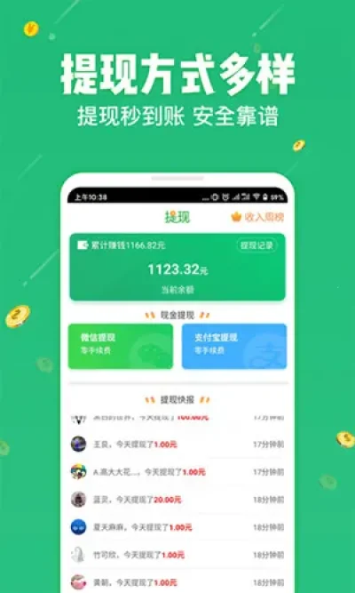 2. 提现便捷:1元即可提现,0手续费,实时到账,支持微信红包、支付宝、QB、话费等多种方式。