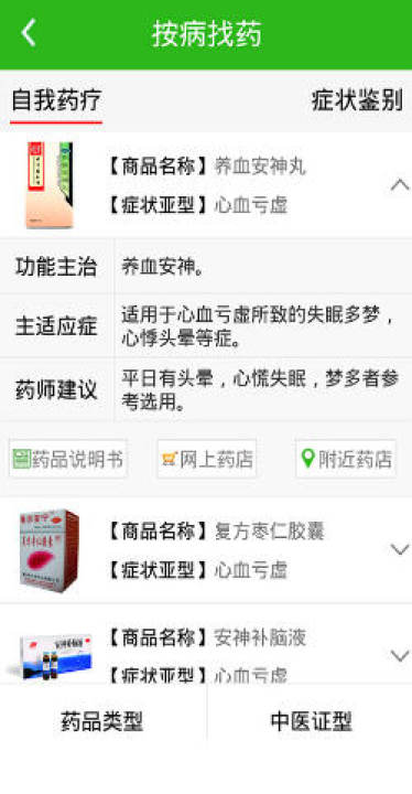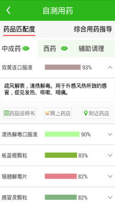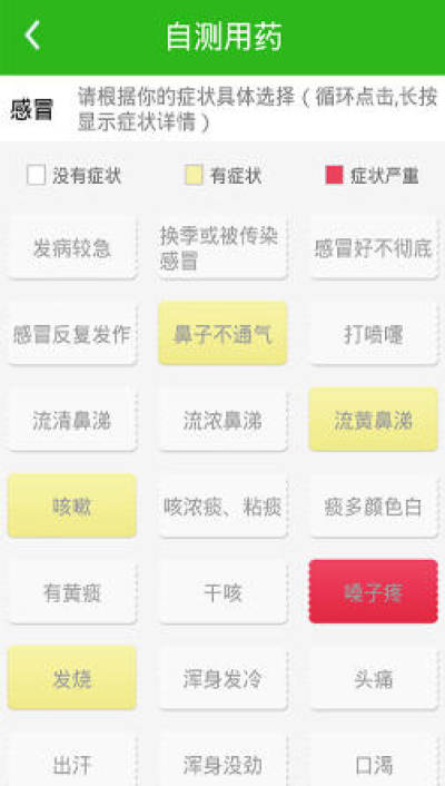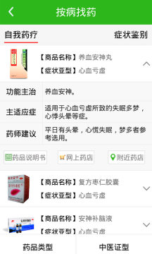 临床专家经验总结,点选症状自动匹配适合药品(中成药、西药),还可根据匹配结果查看说明书、药品价格及周边药店,实用价值★★★★★。