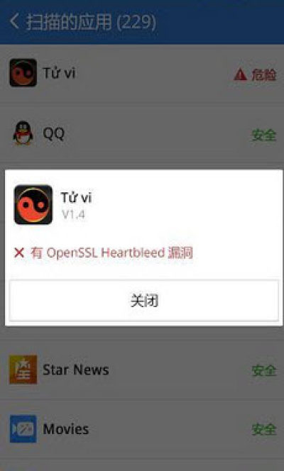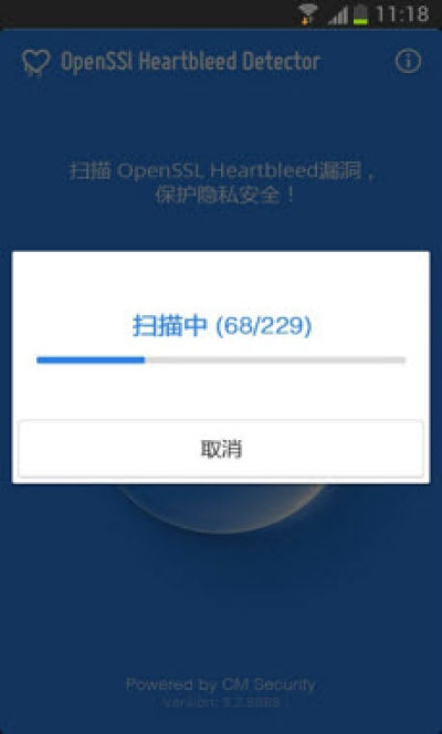 根据CM Security安全专家分析,超过10,000应用受到了OpenSSL Heartbleed 漏洞的影响, 这会导致您的银行账号、邮箱、社交账号等个人隐私信息泄露,财产受损。CM Security OpenSSL Heartbleed检测器对您的系统及已安装应用进行扫描,检测是否存在OpenSSL Heartbleed漏洞,保护您的隐私安全。