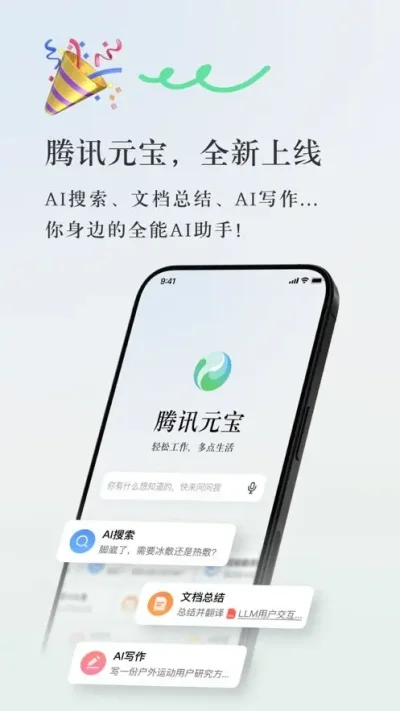 腾讯元宝派安卓版下载最新版是一款以 AI 智能聊天为核心的互动工具,支持多模型对话、文件管理、群组交流等功能,可随时随地畅聊各类话题,为用户提供高效、便捷、沉浸式的 AI 交互服务。
