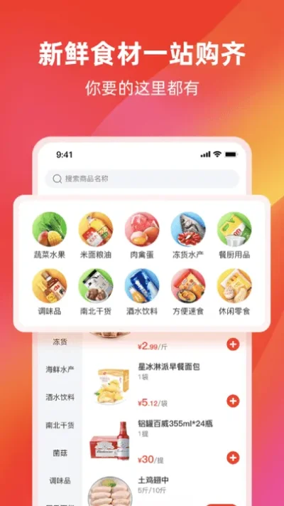 2. 汇集多种食材,分类详细,可随时预览加购,批量采购实惠。
