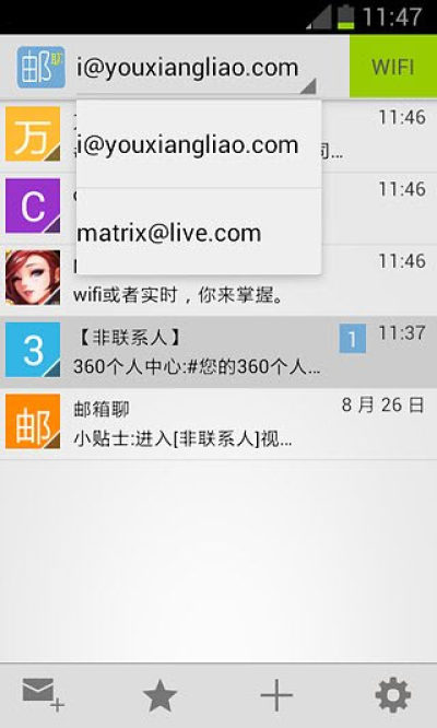 邮箱聊是一款能聊天的手机邮箱软件,这款软件可以如聊天般的收发邮件,同时还可以一键添加联系人和一键分享邮件到微信,操作起来非常的方便,而且还特别节省流量,感兴趣的朋友快来下载使用吧!