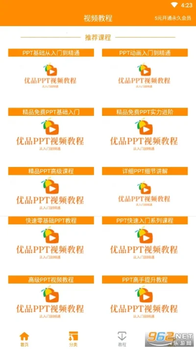2. 首页展示不同风格和类型的 PPT 模板分类,按需点击。