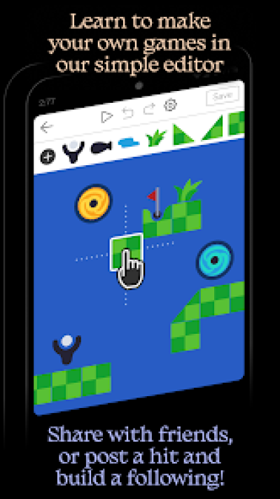 - 使用我们简单却功能强大的编辑器创建你自己的游戏,然后与朋友分享,或发布到社区并积累粉丝。