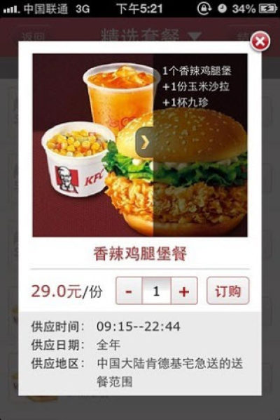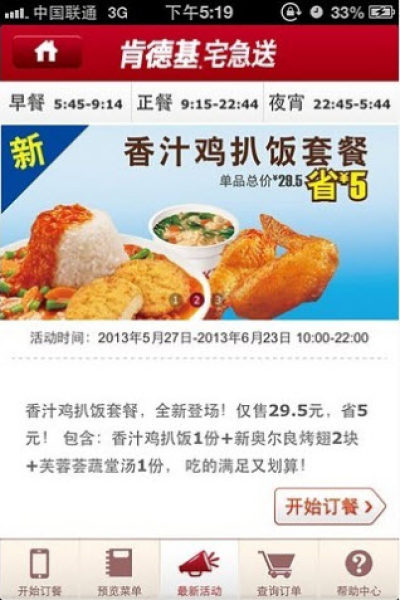 肯德基宅急送是一款手机订餐软件,它是肯德基官方重磅开发的,拥有优惠活动、菜单预览、在线订餐、订单查询和帮助中心等多个栏目,可以帮助宅男宅女快速订餐,轻松享受美食,喜欢吃肯德基的朋友快来看看吧!