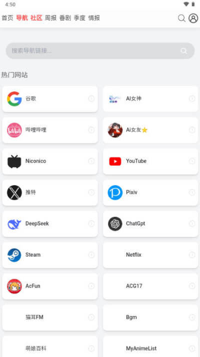 1、软件提供多种动漫导航站可以直接使用。