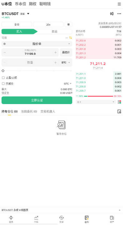 支持600+币种实时买卖,提供限价单、市价单、止损单等多种模式,并集成实时行情、深度图、资讯公告等辅助工具。
