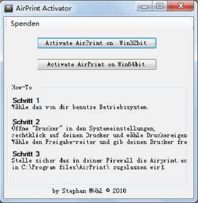 airprint activator是一个拥有32位和64位系统两个版本的功能简单,免费的易于使用的小程序,airprint是苹果公司推出的一款无线打印技术,只需选中本地网络上的 AirPrint 打印机,然后从您喜爱的 iOS 或 OS X app 打印即可。airprint activator可以让可以让Mac系统设置10.6.5 + iTunes 10.1隐藏的特征,这将使你的共享打印机上看到你的网路作业系统设备。