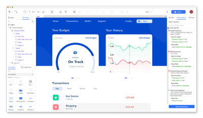 元件与交互设计控件面板包含线框图、流程图、表单等多类型元件,支持导入自定义部件库(.rplib 文件),复用常用元件;支持为元件添加链接、弹窗、显示 / 隐藏、动态变换等交互动作,定义复杂用户操作路径;支持变量、条件判断,实现动态交互逻辑(如输入校验、条件跳转)。