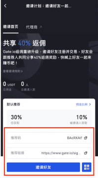被邀请人收到推荐链接后可注册进行,注册成功后被邀请人与推荐人自动成为绑定关系。且在被邀请人注册后一年内的所有现货、杠杆业务进行交易产生的手续费均按照推荐人设置的返佣比例向推荐人进行返佣,同时按照推荐人设置的返佣比例对自己进行自返佣。手续费规则请查看《费率标准》