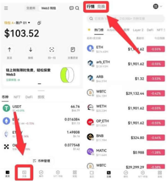 1、进入【Web3钱包】-【交易】页面。