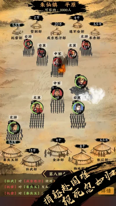 4. 能够自定义操练武将,搭配兵种和将领,打造独一无二的军队。