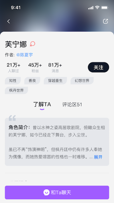 1. AI聊天互动:核心功能是支持用户与AI角色进行文字聊天,交流内容不受限制,AI会严格按照角色设定和过往对话,做出符合逻辑、贴合人设的回应;同时支持语音播放功能,AI可将文字回复转化为语音,且音色可自定义,满足用户对不同声音风格的个性化需求,适配多样聊天场景。