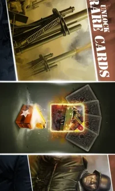 2、能解锁、收集并升级强大部队和战术卡,构建终极军事甲板。