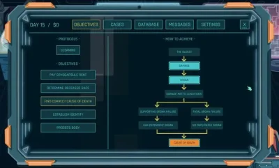3、游戏融合多种元素,有独特风格,还能不受时间限制观察尸体,搜索数据库了解信息等。