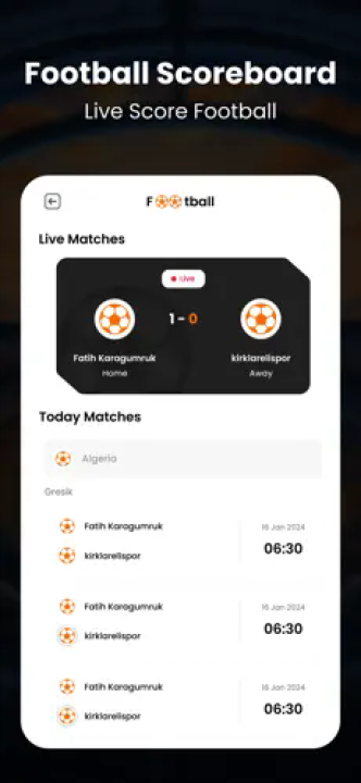 Football Live Scores,体验足球赛事的激情与热血——每个进球都将在第一时间生动呈现!使用这款功能全面的足球比分应用,随时掌握足球世界的一切动态:实时比分、比赛数据、联赛积分榜、球队阵容、赛程表,并可设置比赛提醒——一切尽在掌握!