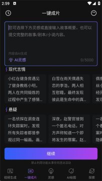 1、点击“一键成片”,输入画面描述。