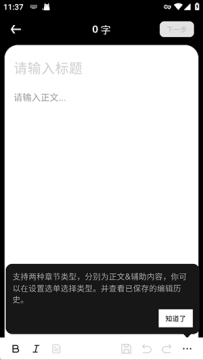 6、输入章节标题与正文内容(支持正文或辅助内容类型),确认无误后点击 “下一步”。