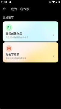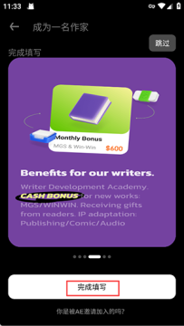 2、阅读并了解平台提供的作家权益后,点击 “完成填写”,开始完善作者信息。