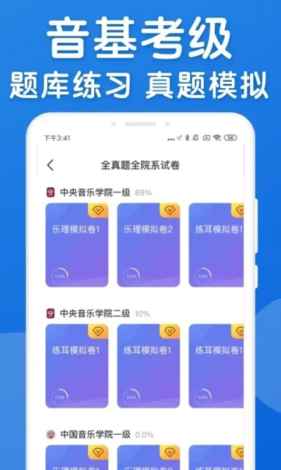 3、它有多种练习与测验,涵盖乐谱绘制、和声分析等,还能保存学习进度,方便随时回看,社交分享也出色。