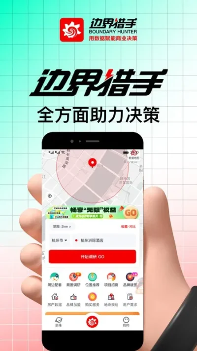 1、边界猎手最新安卓版是一款功能强大的调研查询软件,可帮助开发商等高效获取与应用商业数据。