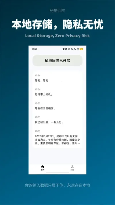 1、秘塔回响2026最新版本主打语音输入,支持与键盘输入自由切换,双击或长按即可说话,语音自动转文本。