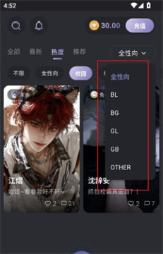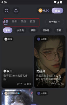 1、进入首页,可以根据热度,推荐筛选喜欢的角色