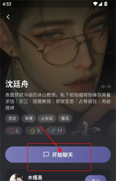 4、进入喜欢的角色界面,点击【开始聊天】