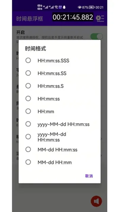 时间悬浮框2026手机版是一款便携准确的计时软件。功能强大齐全,操作简单无门槛。有悬浮功能,能在手机上端中心精准显示时间到毫秒,还有时间偏移功能,支持最多30秒上下偏移。具备声音提醒等实用小功能。拥有多种自定义设置,如时间格式、背景色、字体大小等。支持NTP网络校时、倒计时模式。无广告,占用内存小,方便实用,快来下载体验。