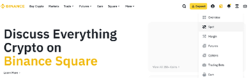 1,登录币安账户,将鼠标悬停在钱包图标上,然后点击【现货账户】。