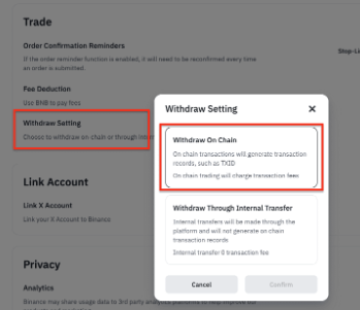 如果选择【链上提现】,您的资金将通过区块链网络转入收款人的地址,您需要支付网络手续费。