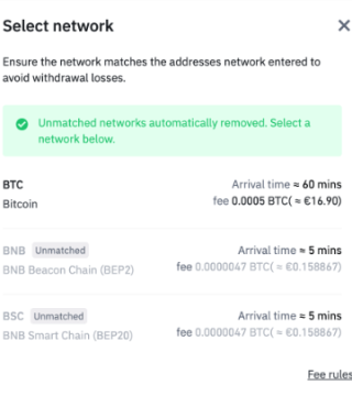 6. 选择提现网络。请确保网络与收款人地址的网络相匹配,以免造成任何损失。