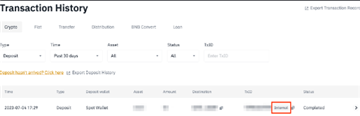 10. 收款人将立即在其币安账户中收到您的资金。他们也可以通过【钱包历史记录】-【充值】查看历史记录。该交易具有相同的内部转账 ID,并将在【交易 ID】下标记为【内部】。