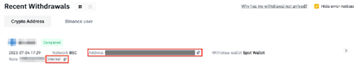 只有当收款人地址是币安账户时,才能免除手续费且确保资金即时到账。确认通过提现进行站内转账之前,请确保目标地址属于币安账户。