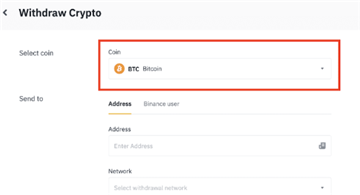3.选择要提现的币种。例如,BTC。