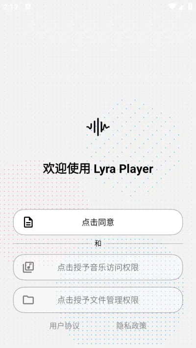 1.打开Lyra Player,首次使用需要授予相关权限,点击同意进入应用
