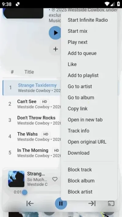 2. 支持将歌曲下载到本地,有从标准到无损音质的多种选择。
