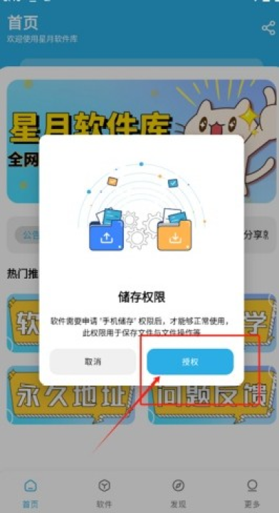 1、打开揽月软件库app后,首先需要[授予其相应的权限]